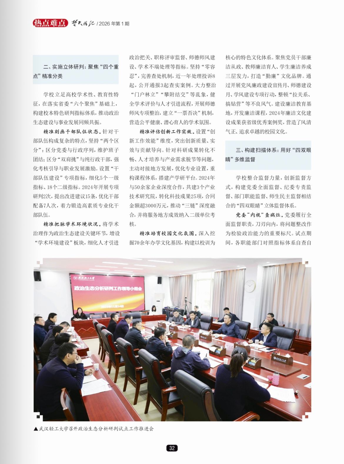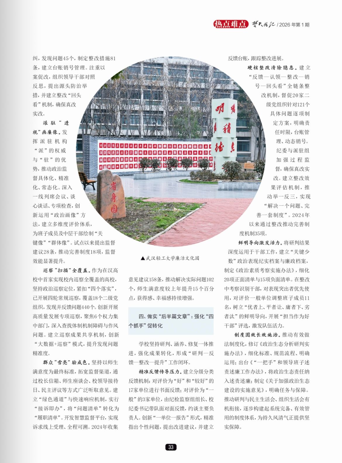 《楚天风纪》2026年第1期发表驻校纪检监察组组长、校纪委书记刘靖君文章《高校政治生态优化的创新实践》,介绍学校政治生态建设工作经验。